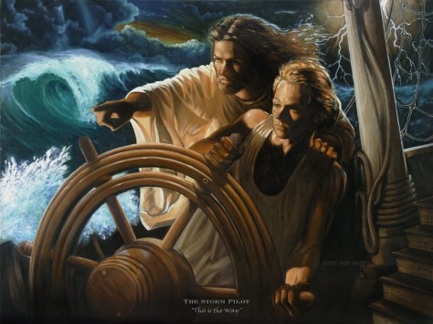 The Storm Pilot painting by Stephen Sawer is my all time favorite. God directs our course and sees us safely to the other side of life’s storms. That is what it calls me to remember, trust, and believe. In the painting, Jesus is depicted pointing the way to go with his right hand of authority while keeping his beloved charge at His protective left.