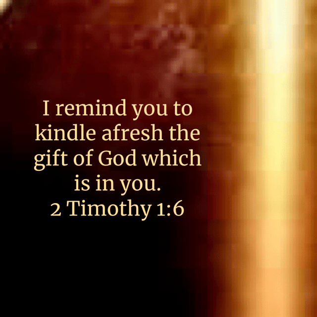 Thus, Paul is saying, kindle afresh the “gift of God” – the work of the Spirit who gifts us with grace (spiritual power) to do all God calls us to, without fear: that work of God that pours forth in response to our faith to believe in, trust in, and obey God.