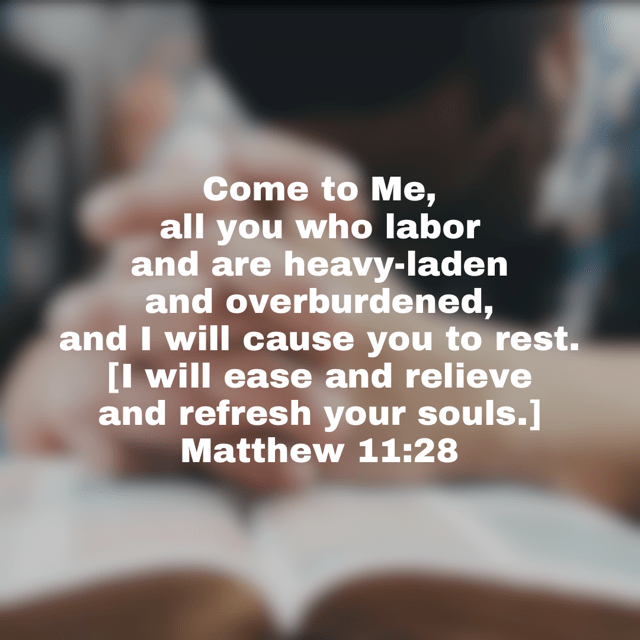 “Come to Me, all you who labor and are heavy-laden and overburdened, and I will cause you to rest. [I will ease and relieve and refresh your souls.] Take My yoke upon you and learn of Me, for I am gentle (meek) and humble (lowly) in heart, and you will find rest (relief and ease and refreshment and recreation and blessed quiet) for your souls. [Jer. 6:16.] For My yoke is wholesome (useful, good–not harsh, hard, sharp, or pressing, but comfortable, gracious, and pleasant), and My burden is light and easy to be borne.” – Matthew 11:28-30 AMPC