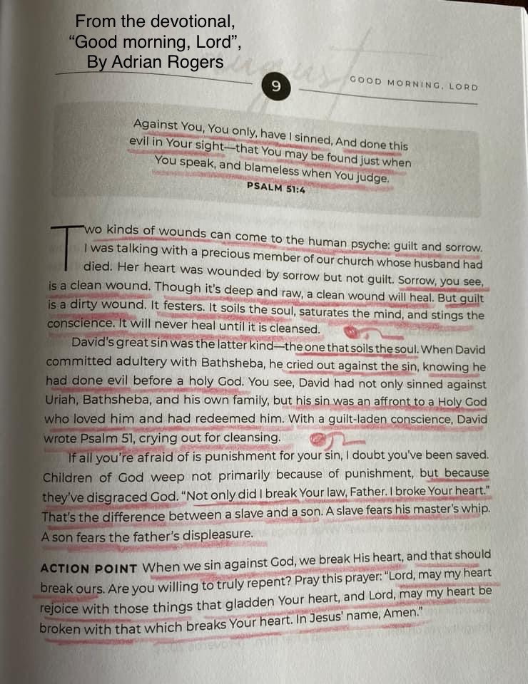 Here am I, O God. Search me and know my heart. Try me and know my anxious thoughts. Grant me eyes to see myself – my heart – as You see me. See if there is any hurtful way in me, and lead me to a right heart in walking through life into eternal purposes fulfilled to the glory of Your Name. Grant me right heart attitudes in serving You with whole hearted fervor, practicing patient endurance, to a finish that glorifies Your name and accomplishes Your purpose. May I realize the evil around me and recognize any way in which I inadvertently give myself to those things that displease and dishonor You. Deliver me from evil, and lead me to repentance that reestablishes right standing with You. Make me a light that helps those I love or come in contact with to find You for themselves. This I pray in Jesus’ Name and by His authority, amen.