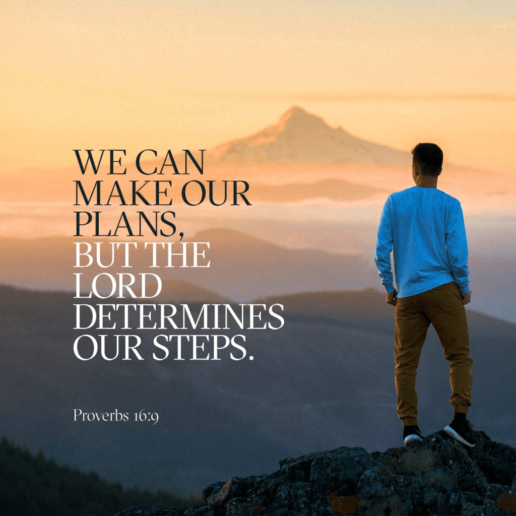 “The mind of man plans his way, But the Lord directs his steps.” Proverbs 16:9