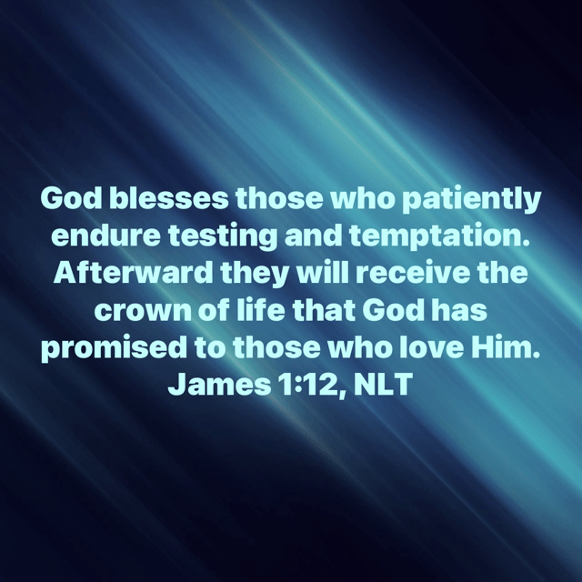 “God blesses those who patiently endure testing and temptation. Afterward they will receive the crown of life that God has promised to those who love him. And remember, when you are being tempted, do not say, “God is tempting me.” God is never tempted to do wrong, and he never tempts anyone else. Temptation comes from our own desires, which entice us and drag us away. These desires give birth to sinful actions. And when sin is allowed to grow, it gives birth to death.” James 1:12-15 NLT